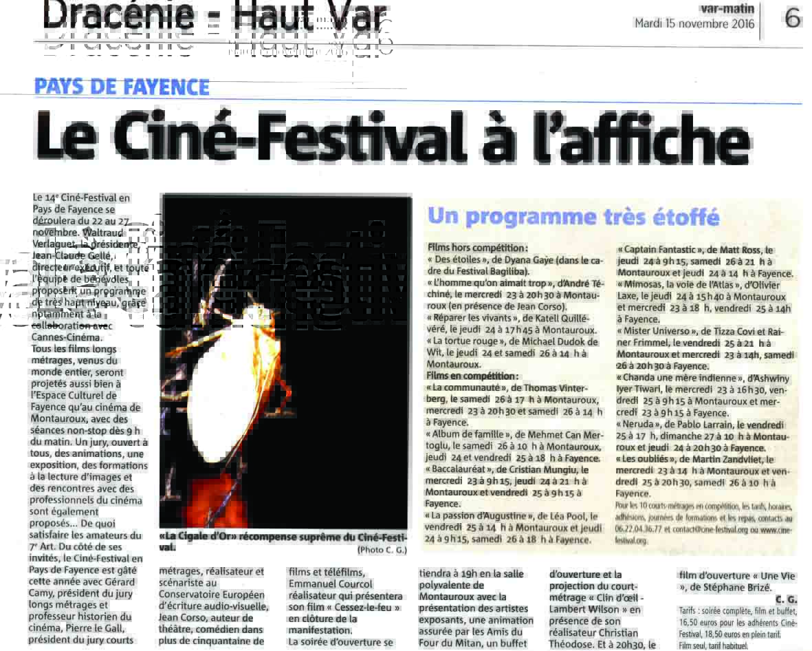 Ciné-Festival en Pays de Fayence - Secrétariat :1073 chemin des Touars, 83440 Callian - tél. 06 22 04 36 77
